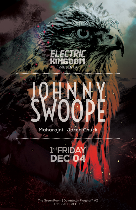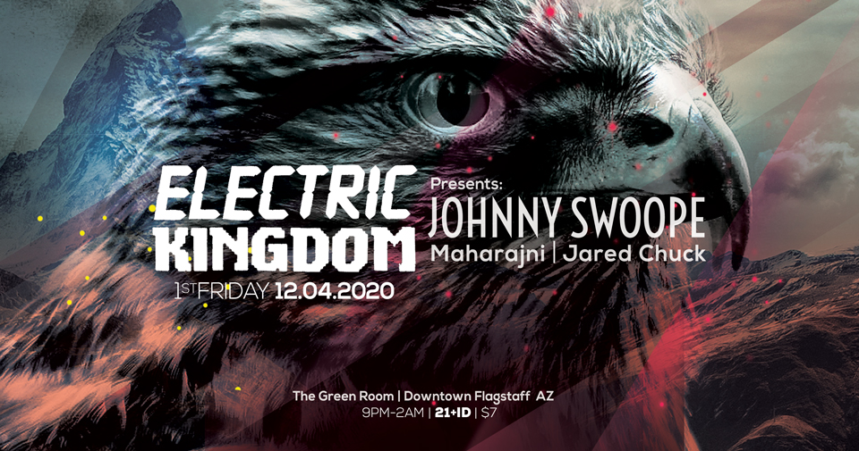 Electric Kingdom weekly night club 12-04-20 featuring Johnny Swoope. 11X17" poster and social media banner